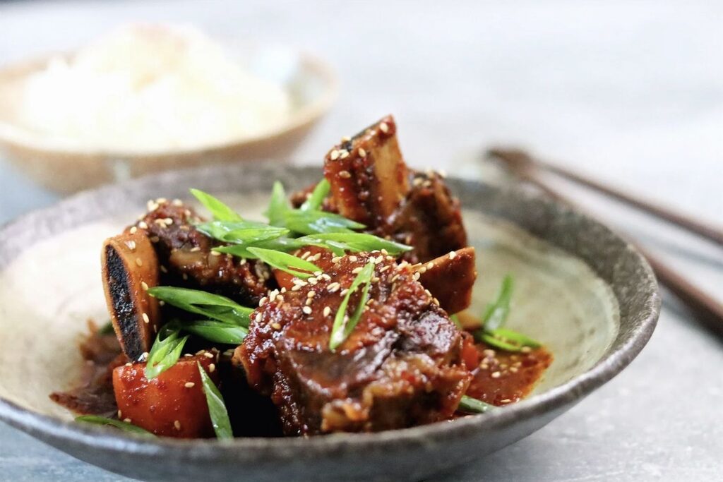 - Low and Slow Braising: The key to tender Galbi Jjim is low and slow braising. Simmering the short ribs over low heat for an extended period allows the collagen in the meat to break down, resulting in incredibly tender and fall-off-the-bone meat.