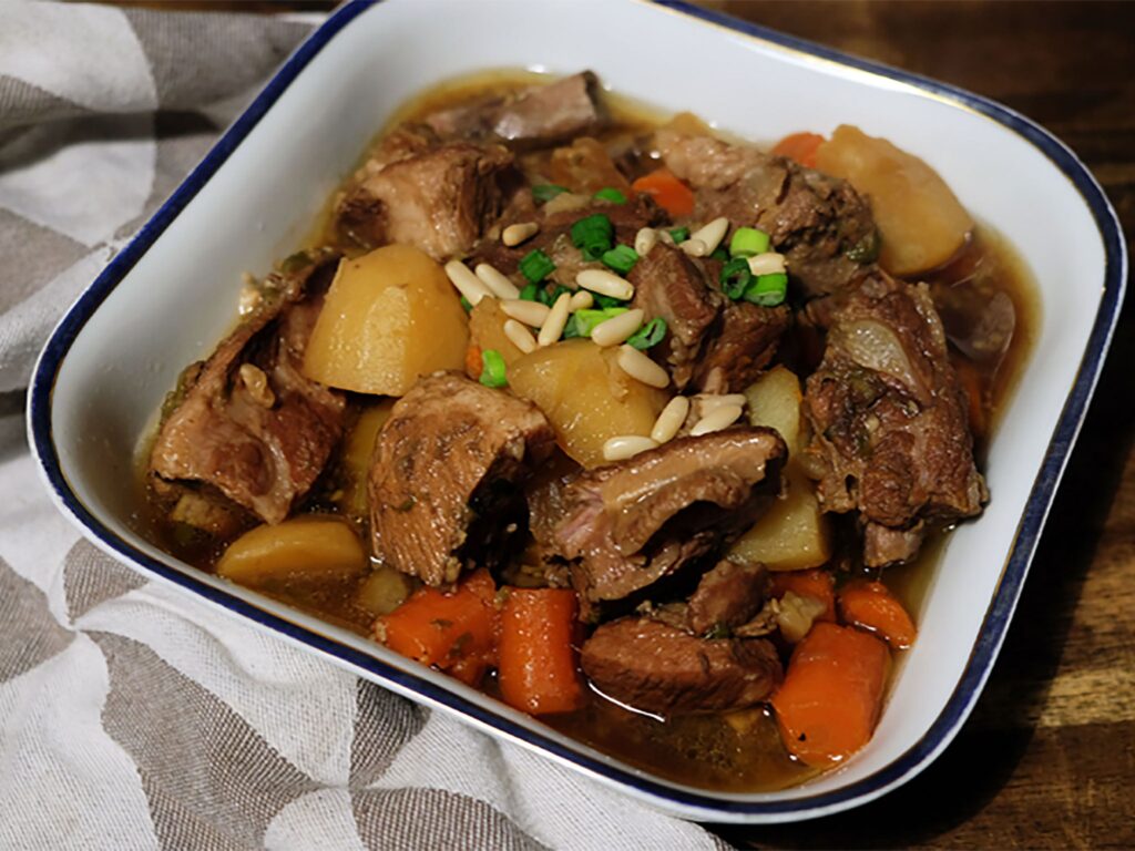 - Add Vegetables and Chestnuts: After the short ribs have been braising for about 1.5 to 2 hours, add the carrots, potatoes, and shiitake mushrooms to the pot. Stir gently to combine. Continue to simmer, covered, for another 30 to 45 minutes, or until the vegetables are tender. Add the chestnuts during the last 15 minutes of cooking.
