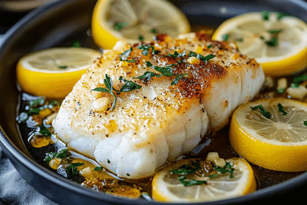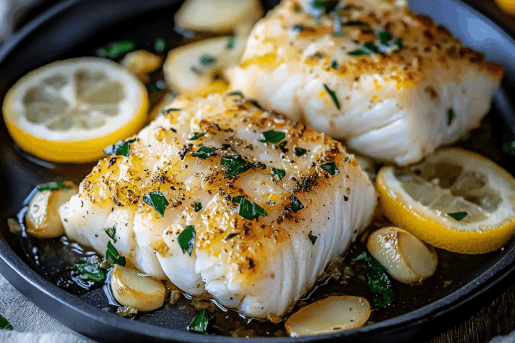 - Garnish and Serve: Once the cod is cooked, remove it from the oven and garnish with a sprinkle of fresh parsley and a lemon wedge. Serve immediately.