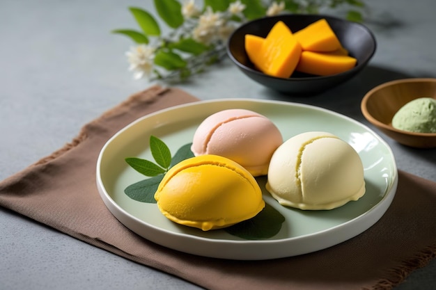 Premium AI Image Mochi ice cream with mango is a classic Japanese
